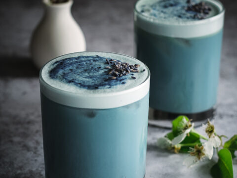 A delicious, calming Butterfly Pea Flower iced latte infused with sweet lavender honey. It’s caffeine-free and perfect when you need a little unwinding.