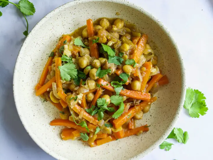 Moroccan Chickpea Tagine with Preserved Lemons is a light stew that's perfect for any time of year. It's sweet, salty, aromatic, and mouthwatering!
