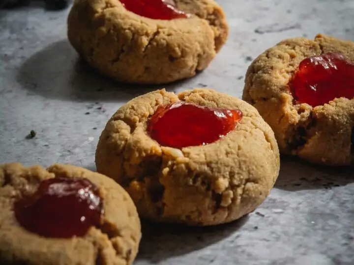 Almond Flour Cardamom Peanut Butter Thumbprint Cookies are flavorful, light, and delicious. They’re also gluten, and dairy-free.