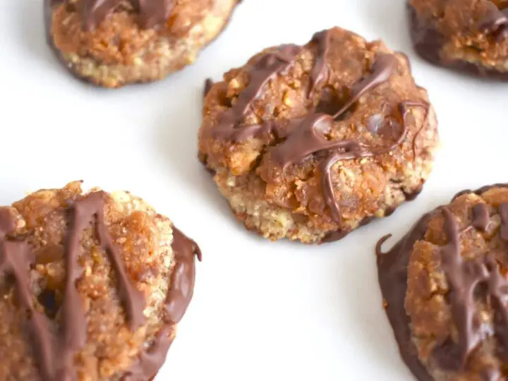 Girl Scout cookies don't need to be unhealthy. These vegan Samoa cookies are added sugar-free, gluten-free, and vegan.