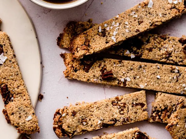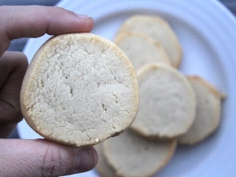 This simple grain-free shortbread is made with almond flour and flavored with maple syrup. The cookies come together with just 3 simple ingredients and are naturally gluten-free.