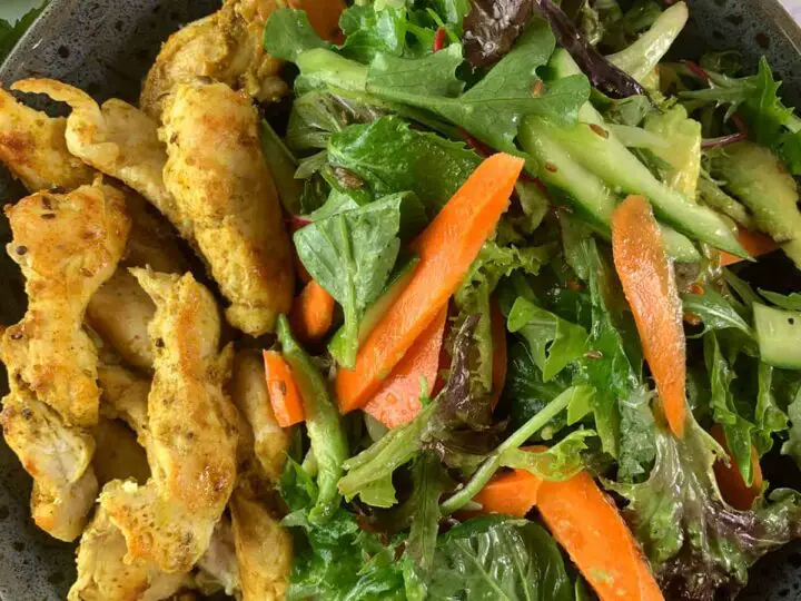 Our keto curry chicken salad is a healthier version than most as we use a delectably zingy citrus cumin vinaigrette. A satisfying main meal salad for any occasion.