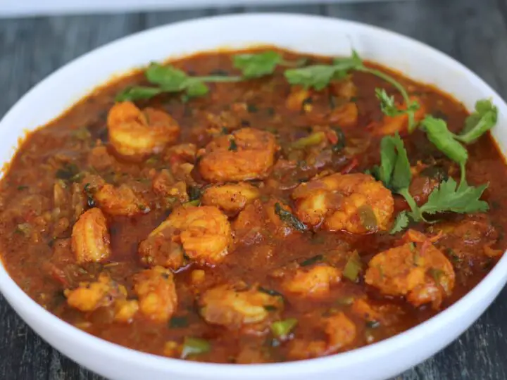 Kadai Shrimp Curry is one of my favorite Indian curries. If are looking for an awesome Indian seafood curry recipe, this is just the one for you. It’s packed with flavors and can be adjusted to your taste.