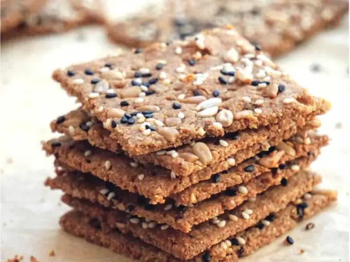 Homemade low carb keto crackers recipe that’s also vegan, dairy free, gluten free, nut free and paleo friendly. These keto crackers get the crunch from a mix of seeds like flax seeds, sunflower seeds and sesame seeds. If you’re looking for vegan keto snacks or dairy free keto recipes, these low carb crackers are just perfect for you!
