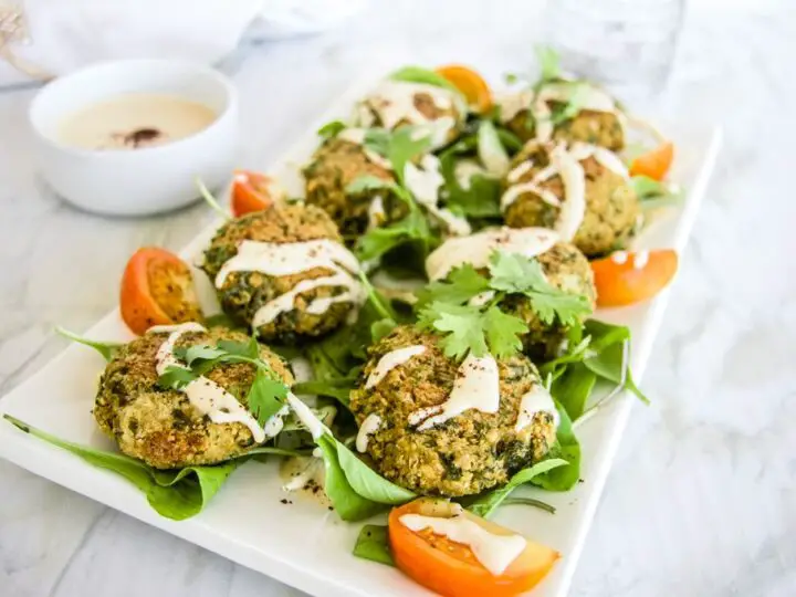 Easy baked cauliflower falafel is a low carb and paleo version of the classic Middle Eastern dish. A great light lunch served with keto flatbread, dips and a side salad.