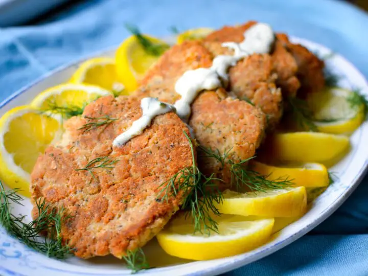 Paleo Salmon Cakes with Lemon Dill Sauce makes for a speedy weeknight dinner that takes just 10 minutes to cook! They’re paleo, whole 30, and make the perfect meal for anyone who loves salmon.