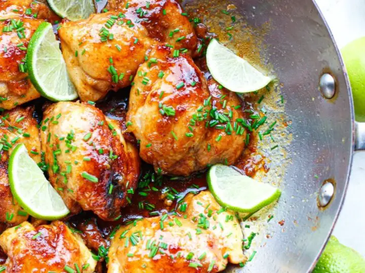 Boneless, skinless chicken thighs make a great weekly dinner, with an easy prep, and everyone loves them! Flavorful and easy to pair with a side dish or two, Spicy Honey Lime Chicken Thighs are perfect for Keto, Low Carb, Paleo, AIP, GAPS and VAD diets, as well as gluten-free and just about everyone.