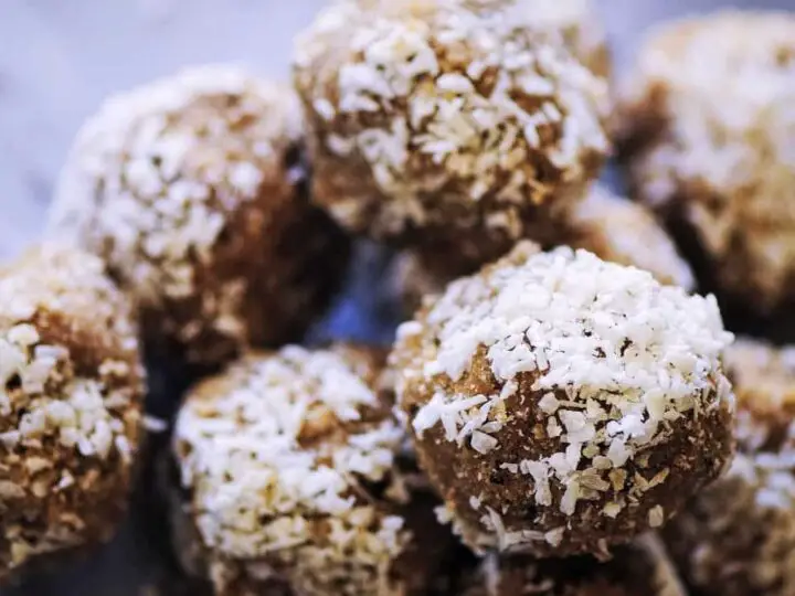Easy, healthy and delicious Coconut Bliss Balls made from coconut and sunflower seeds. The perfect gluten-free and vegan energy boosting snack! Nut-free.