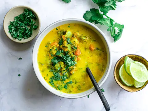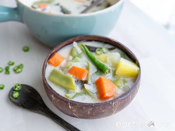 Kerala ishtew, or ishtu, is a hearty coconut milk vegetable stew with a little heat (but of course, feel free to make it as spicy as you’d like). Packed full of carrots, potatoes, and green beans, this is a cheap and healthy staple food in the southern Indian state of Kerala. Vegan and gluten-free.