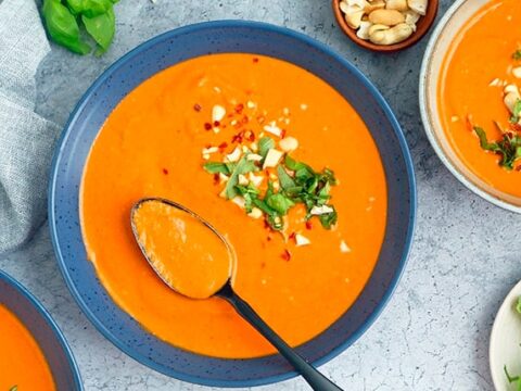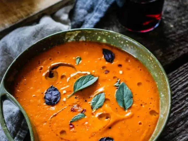 Creamy Vegan Tomato Soup is ultra thick and creamy using cashews instead of coconut milk or heavy cream. It is Rich, Healthy, made with no broth and comes together in under 30 minutes!